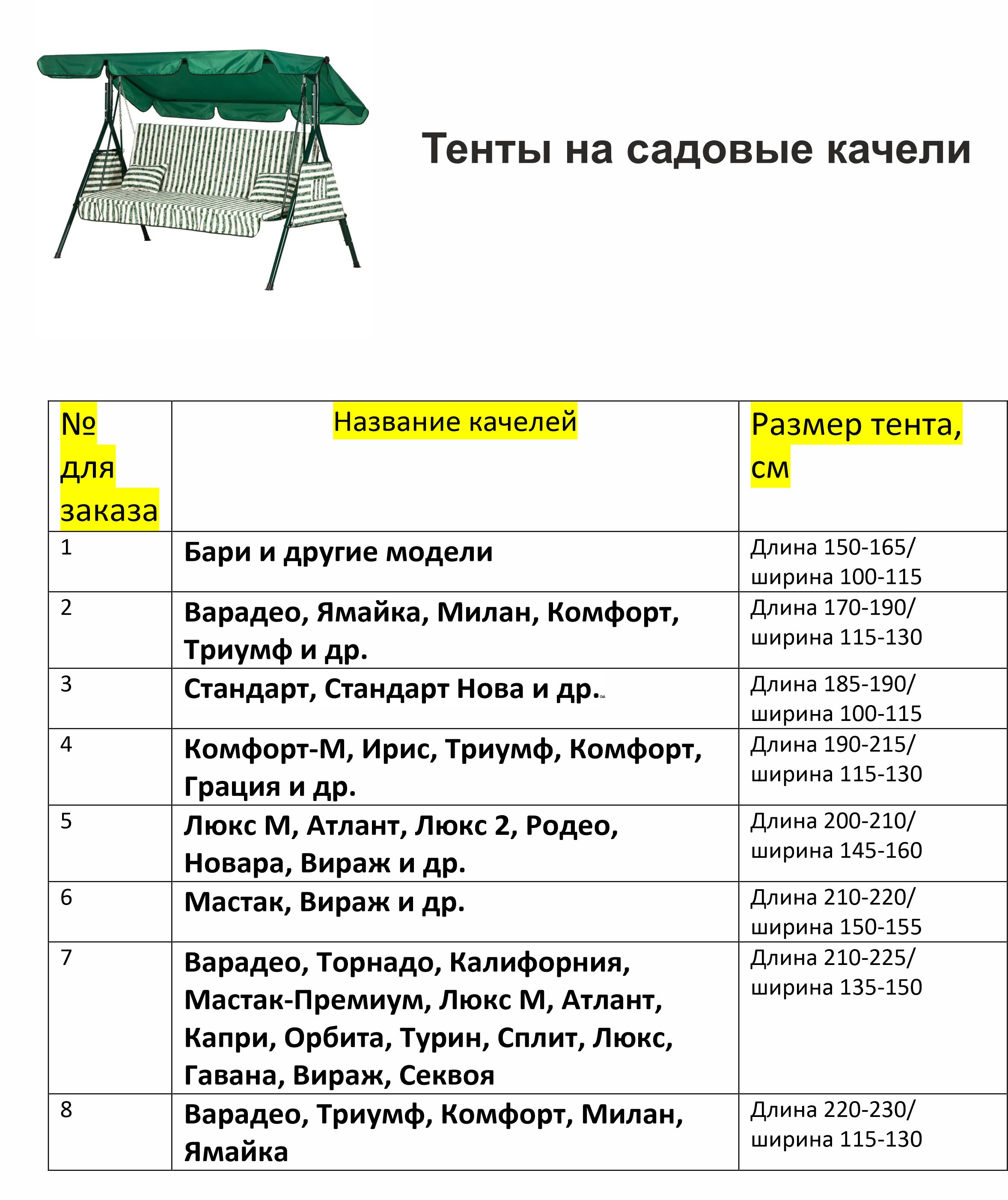 ТЕНТ ДЛЯ КАЧЕЛЕЙ ВАРАДЕРО, ТОРНАДО, КАЛИФОРНИЯ, МАСТАК-ПРЕМИУМ, ЛЮКС-М, АТЛАНТ, КАПРИ, ОРБИТА, ТУРИН, СПЛИТ, ЛЮКС, ГАВАНА, ВИРАЖ, СЕКВОЯ.